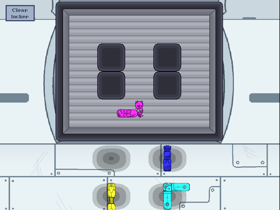 Very sweet puzzle game! Found one little bug, once you have pressed the "clear locker" button once, if you press space it will both rotate and clear the board. Also it makes the piece you are holding shrink and it stays after you place it down.