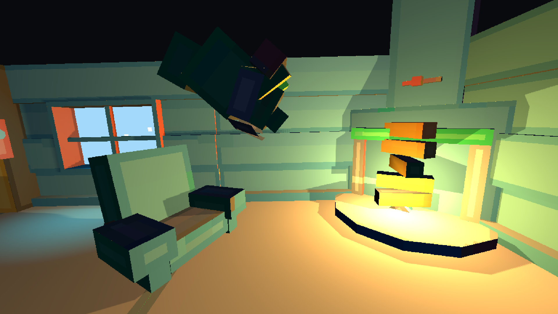Cute little game! Would have loved to get a cozy fire animation as a reward for stacking the logs all the way up into space. :D I liked the fact that you can look out of the window! After sitting I got up and could walk in the air. :')