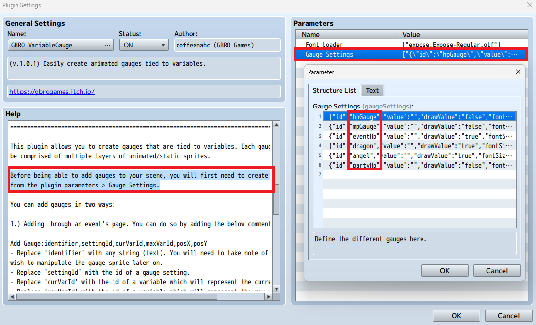 I don't understand what settingId means from the text description. I named my first gauge "distance". Please explain if possible. It's not rendering anything.