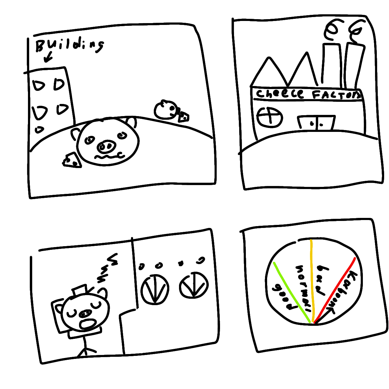 I made a stupid plot for this game: The Blue Hogs had a factory that produced cheese, which they loved to eat, but for some unknown reason the factory exploded (definitely not because the Hogs ignored safety) and all the Hogs started collecting cheese, building various transport in order to get it.