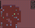 Permadeath, turn-based, grid movement. Levels are procedurally generated with a random walk algorithm.