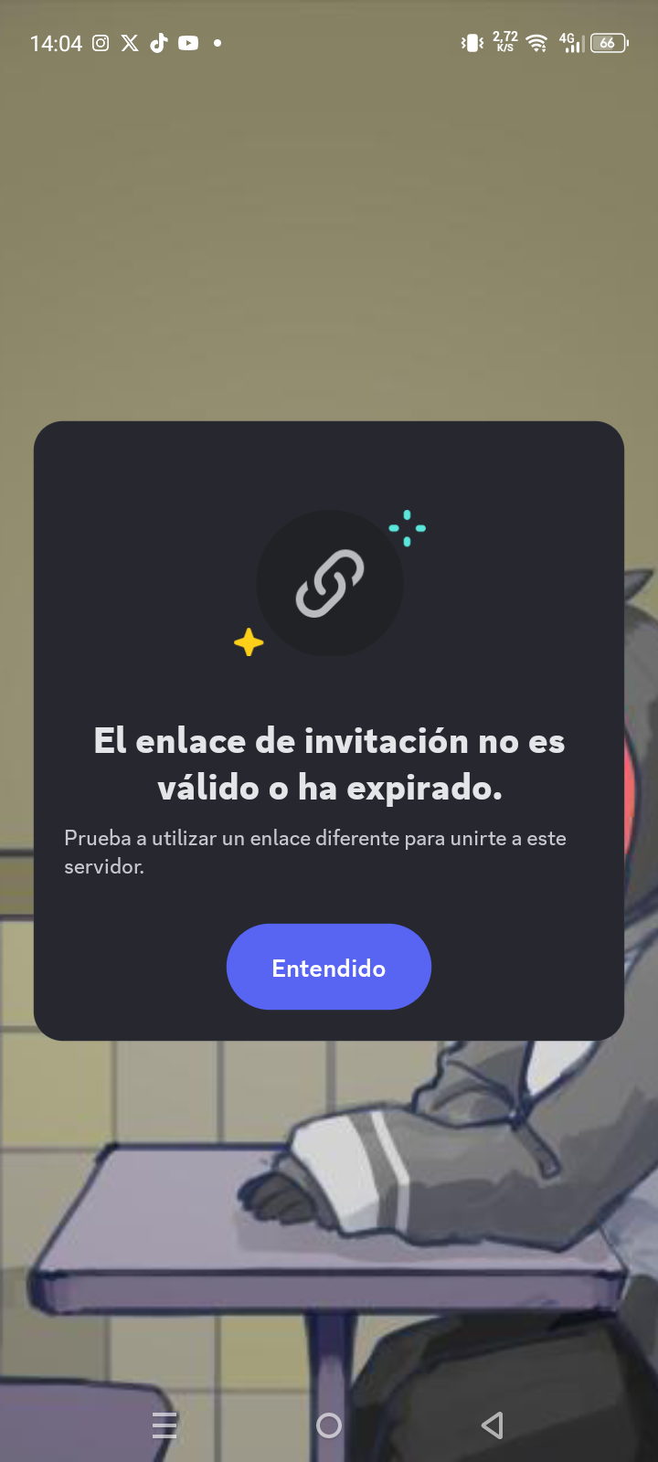 I'll leave a screenshot of the invalid invite (it's in Spanish)