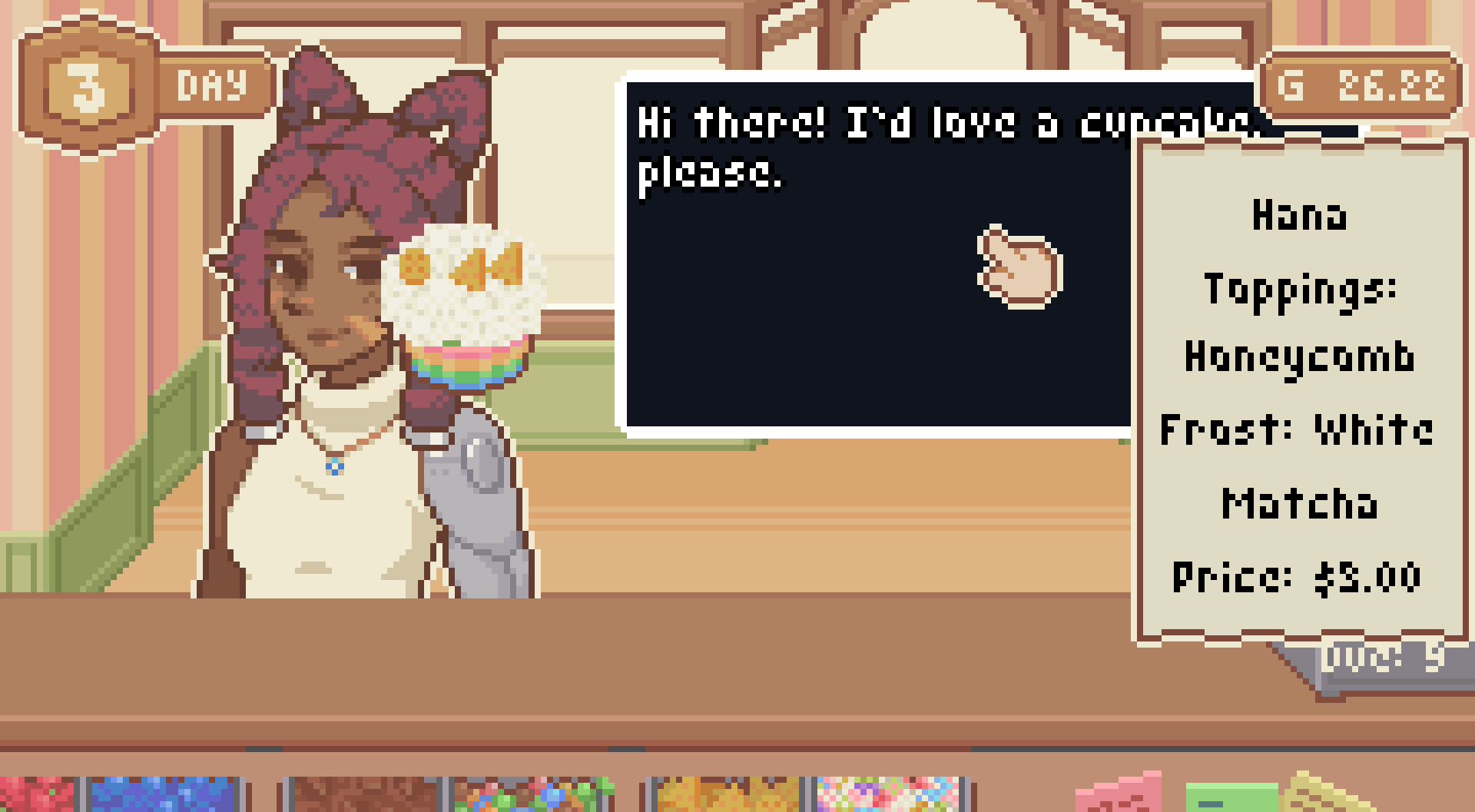 Another thing I noticed is that occasionally the customers didn’t react when I gave them a perfect cupcake. The cupcake just stayed floating in the air instead of being taken.