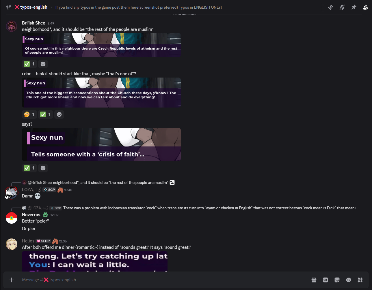 This is also the reason why the ❌typos-english channel exists on the official MDRG Discord server.