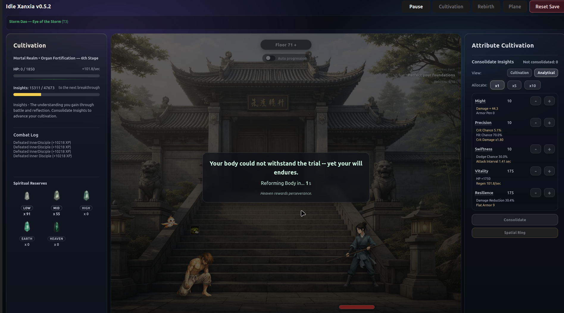 Also currently once you are on plane two enemy damage scales a lot faster than their health. I need somewhere between 120-126 in both resilience and vitality to beat any vagabonds but once I can it's enough durability to reach floor 30 with a 1/3 chance of beating each enemy regardless.