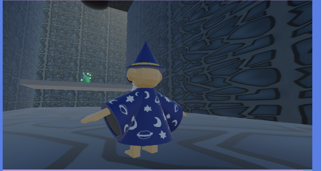 First of all, the cursor doesn't render, but it's still not locked to the center, which makes rotating the camera extremely awkward. I couldn't get past the first level—at first I fell through the textures, then I restarted the game, saw the platforms, but couldn't get past one lamp. I didn't understand what's supposed to happen when I switch to blue mode.