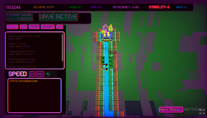 I tried several times, but I always let enemies through to the base in the first round. The money rewarded for enemies is a bit low—maybe I didn't understand how to earn money. I didn't understand what food and population are for, what they do. I'd like WASD controls, not just mouse. Also, the game sometimes stutters.
