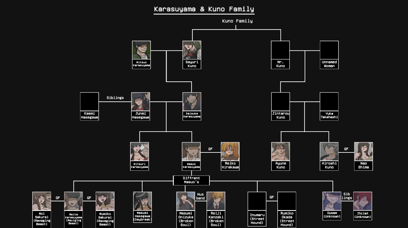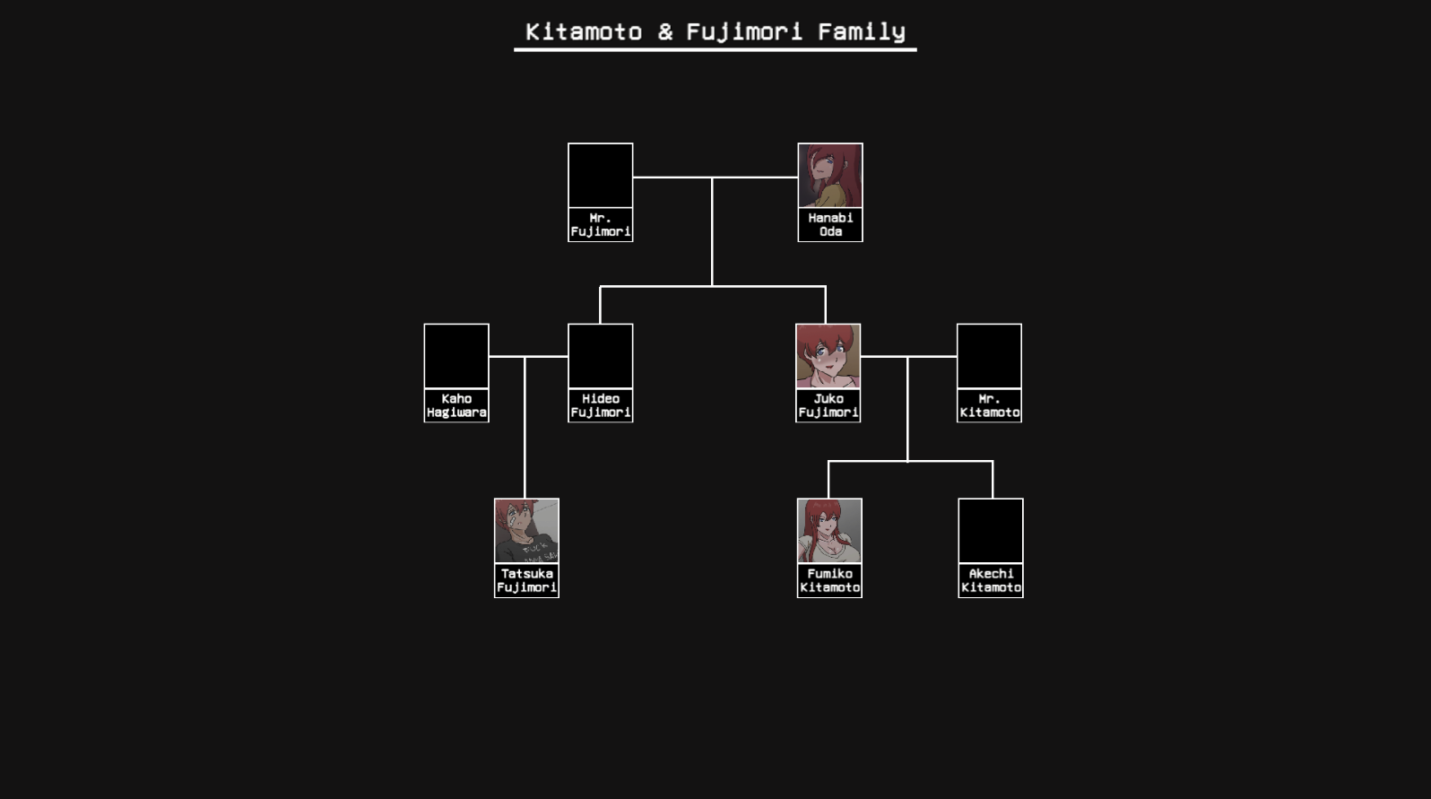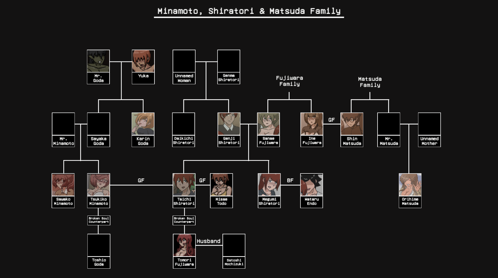 Don't think family tree for any character in CB is necessary. Most will not appear outside of that game.