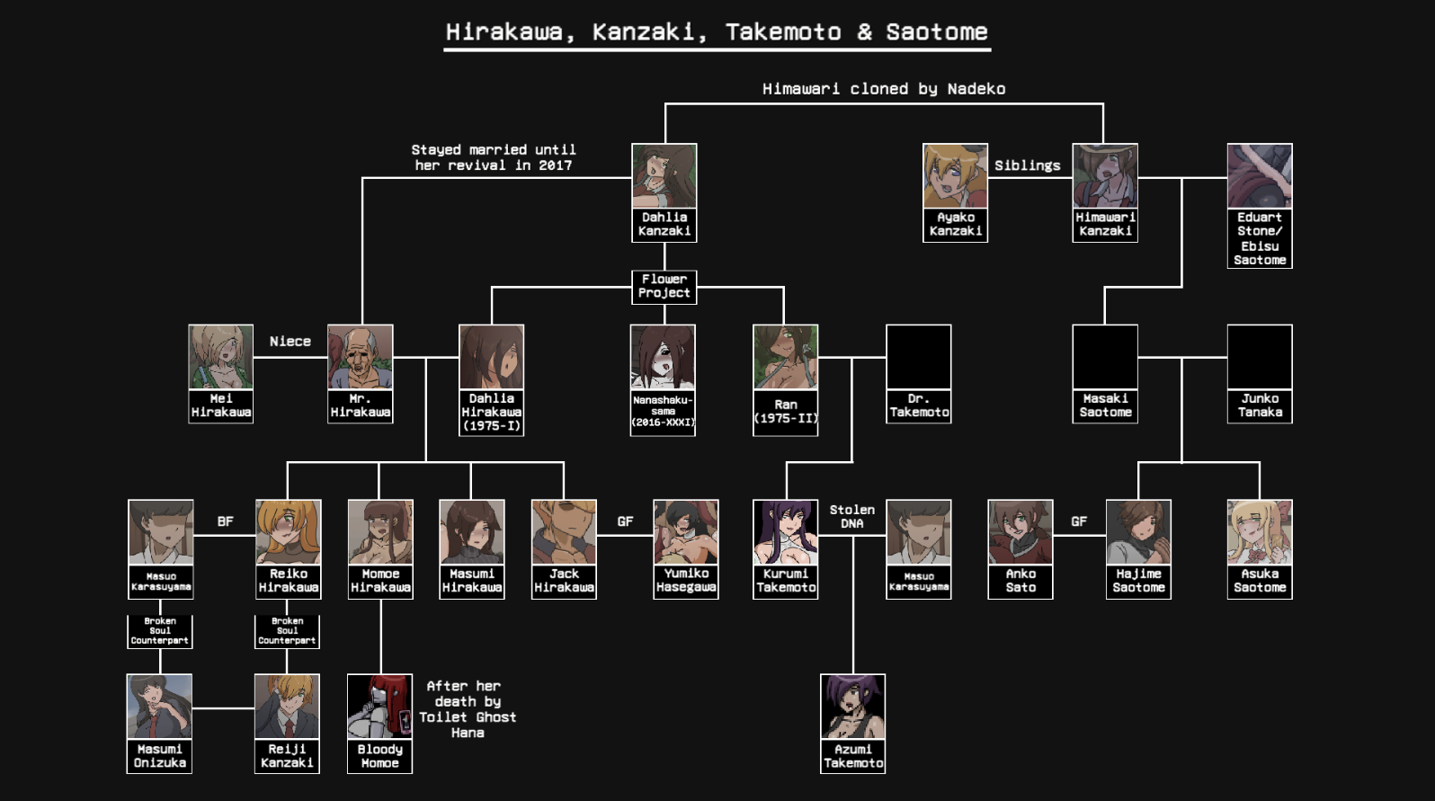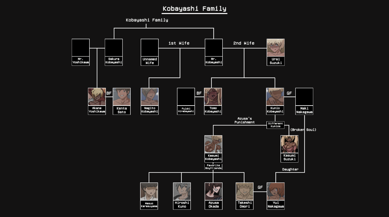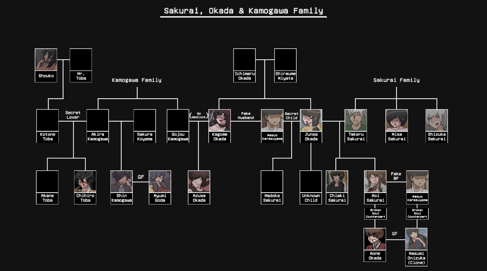 Don't think family tree for any character in CB is necessary. Most will not appear outside of that game.