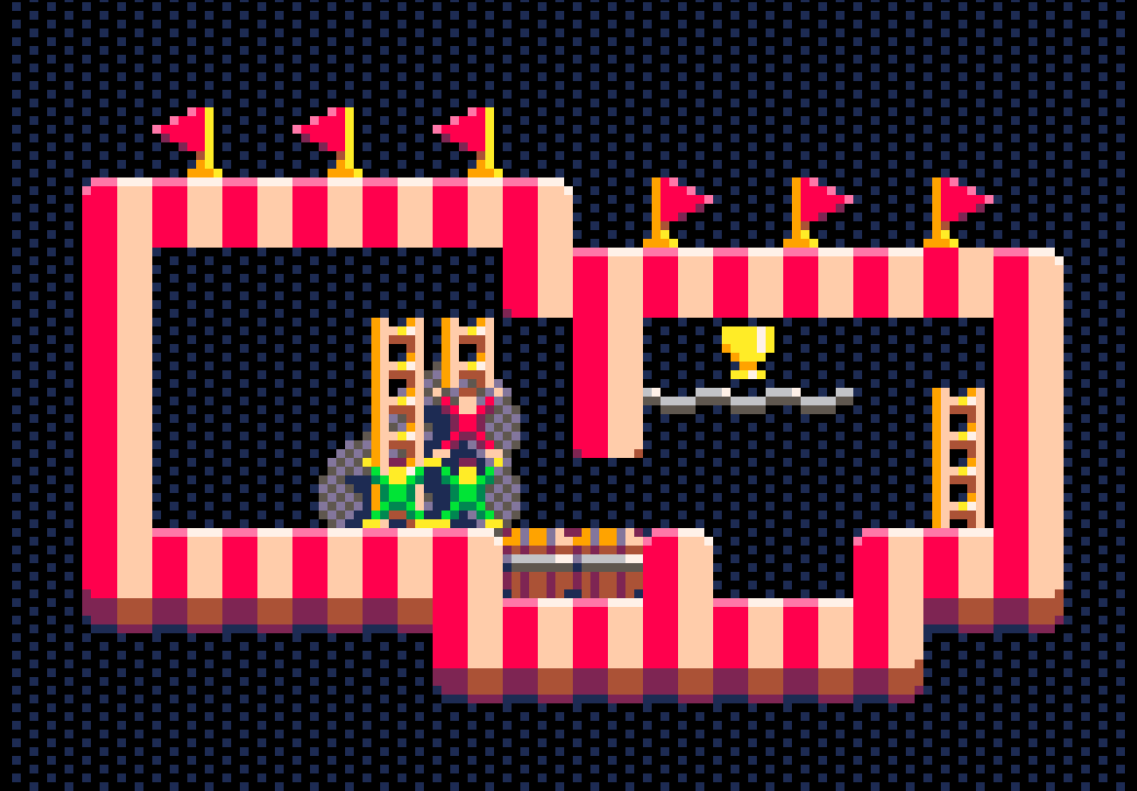 Pressing down(or left and down) from this position. If anyone is on the ladder and the green below the red is on a solid surface.