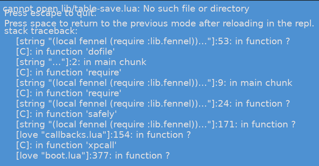 I tried in-browser in Safari, then Chrome, then I downloaded the .love file. All three give me an error when leaving the main menu: