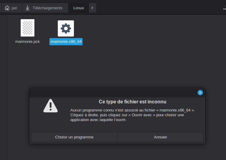 Je pense qu’il faut que tu le marque en tant qu’exécutable avec chmod +x <chemindufichier>