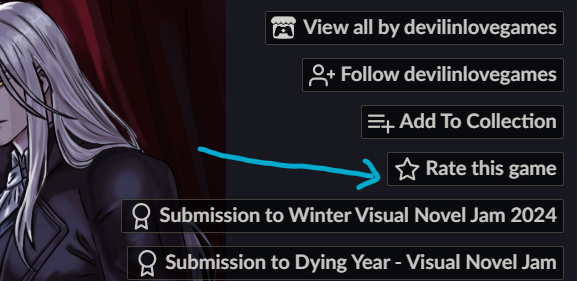 Not the same way. Rating it for the jam is for jam ranking. It's the button to rate the game itself that I'm not seeing. I'll show an example of it on another game.