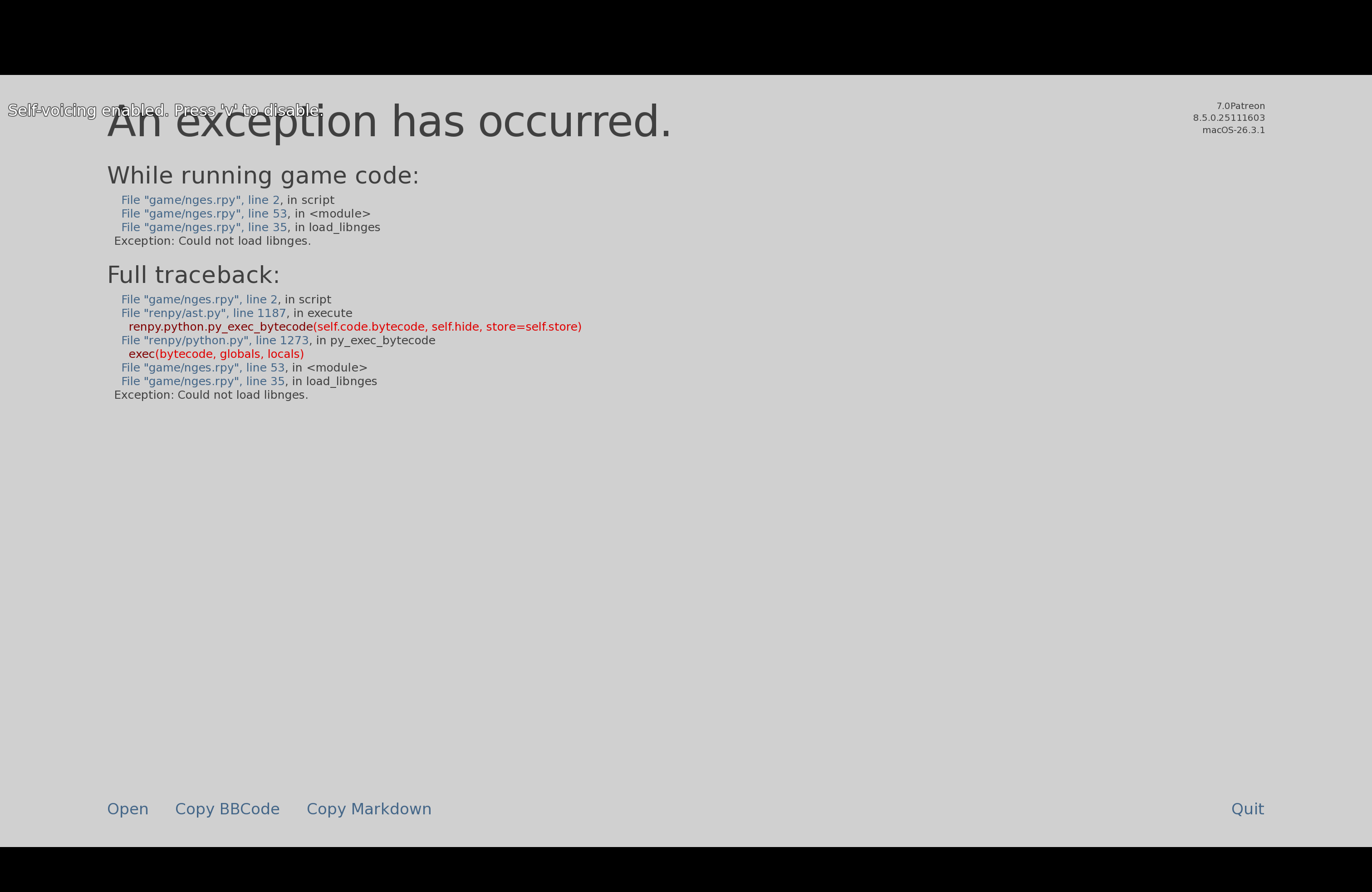 Hi, I'm on a Mac and when I launch the game I get this error page