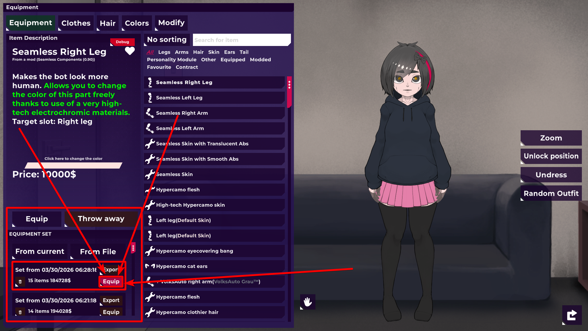 💾 How to Load a Saved Outfit Preset: