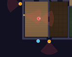 Simple puzzly idea. I find it a bit tricky to control the player with the mouse clicks tho. Might be more fun to use WASD for the player for more precise control. That might be just a personal preference. Also, I needed a bit of time to realise that those outside were door guards (couldn't figure out how to enter). Good luck onward!