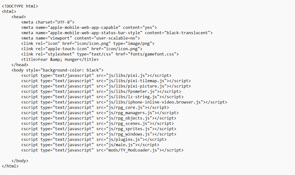 The error in this case is happening because you are using some mods that aren't designed to work for Fear and Hunger 1.