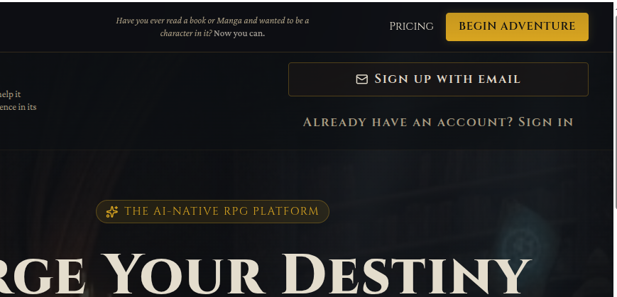 which looks like a repeat of first page. From this point following the "sign in" path again just loops through this page; clicking "Begin Adventure" goes to sadface "refused to connect".