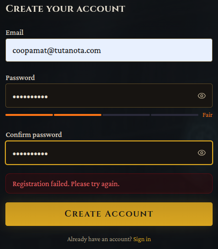 i want to thank you very much for taking the time to tell me of your issue with the game i truly appreciate it, because of this i was able to identify several different problems and issues that may affect people trying to create an account and play the game. Due to the issues that were uncovered i do believe that you you were experiencing some issues between brave itch.io and the game itself. I have implemented the fixes so the game should now work correctly for you when you try to sign in. If you experience any more issues please do not hesitate to contact me, i will try to find and fix any issues you experience in as timely a manner as i can, though i must state i am only one person i dont have a team of people working on the game its just me so i try to get to things as fast as possible but normally work on the game at night and am sleeping between normally 5-6 am to 2-3 pm mountain standard time. Below are the issues found and fixes made it is currently updated to implement the changes.