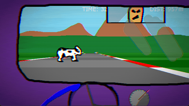 I paired the technical intensity of a 90s arcade racer with the absurdity of dodging cows and snowmen at 250km/h. The "silly" soul of the game lies in the handcrafted GameMaker sprites and the frantic, horn-heavy driving.