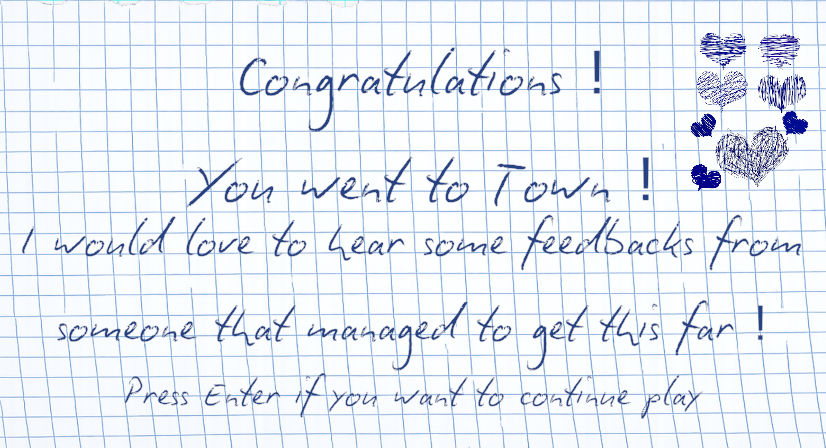 That was a long and fun play. Proud enough that I finished it that I putting the complete screen in the message! Probably my favorite concept in the jam. Scrabble but I'm in a world and changing stuff is such a fantastic idea. I love the vibe and that there is a clear goal which I have to puzzle through. The backtracking into the original hut was a great addition and good job making everything useful. No wasted words there is very important since it would be confusing.