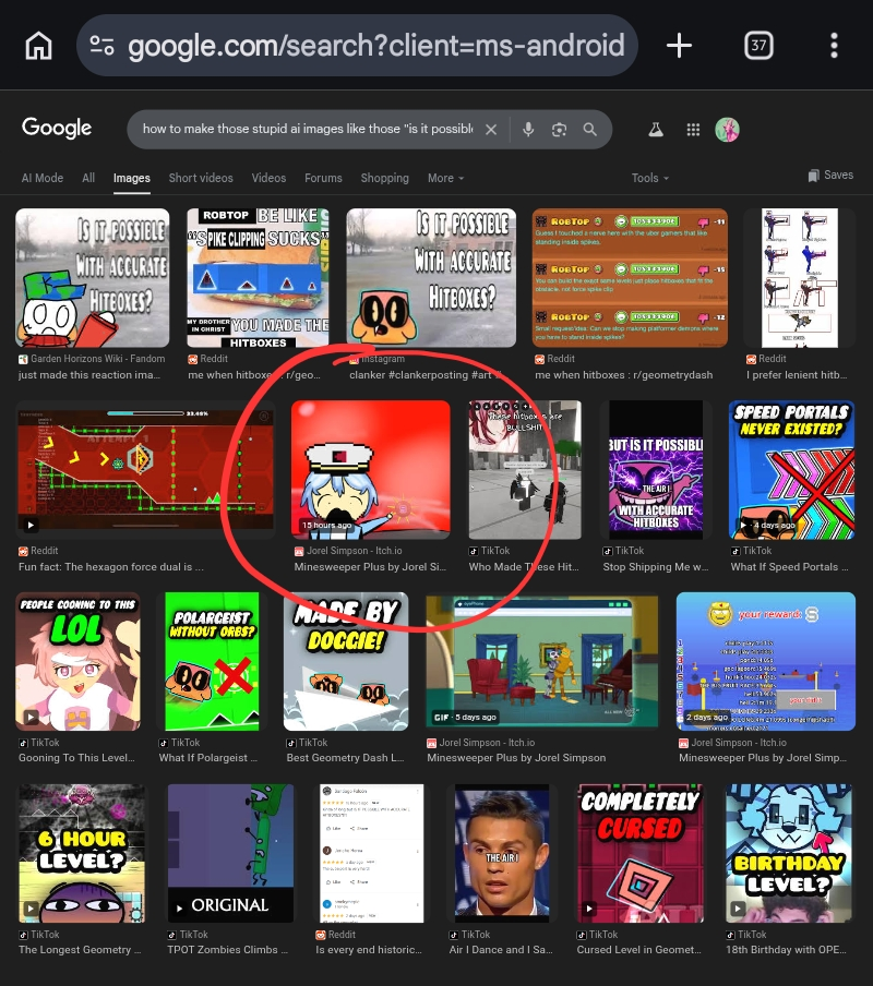 HEY! Does anyone noticed that the right-most image in row 3 is actually @an idiot's Goonsweeper end screen?
