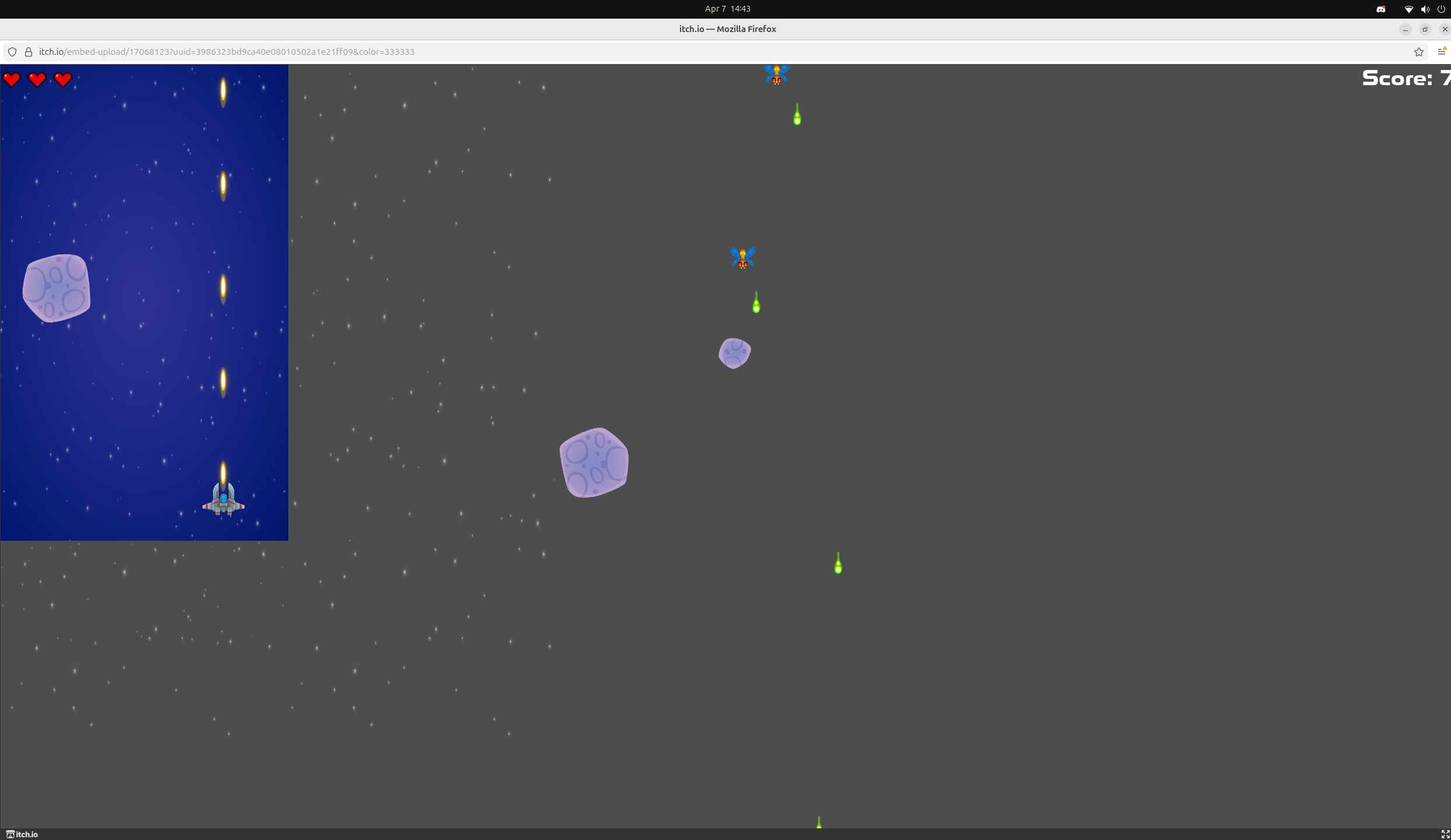 The game wants to open a new window and increase the window size. This pretty much breaks the game, as you can see in the screenshot below. But resizing the game to the blue background's dimensions allowed me to play the game as intended. Visuals were pretty good. Music was good, but I wish the sound effects were a little louder. Some of the mentioned features on the page weren't there, but this was a fully playable experience anyways (if you have the right window size anyway). Nice job.