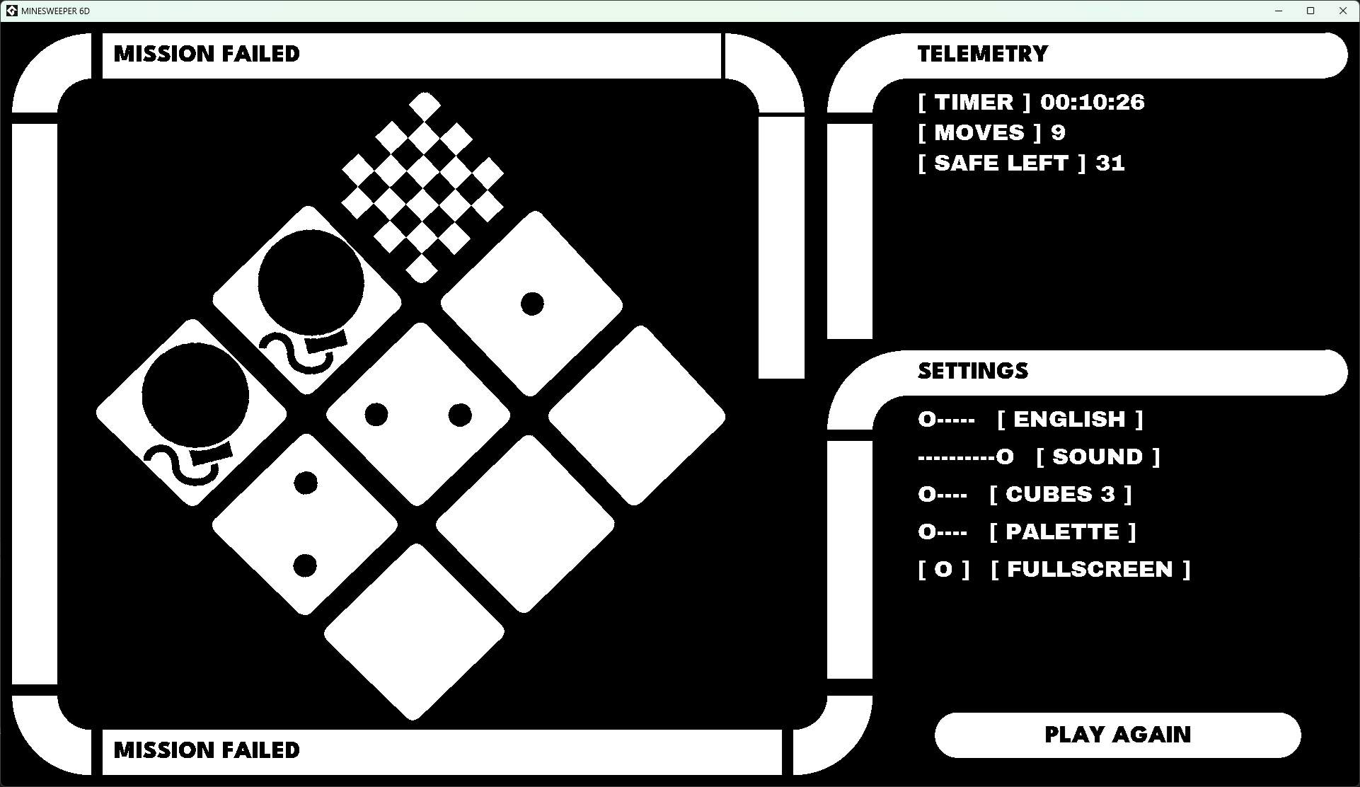 That was pretty cool. The idea of being able to shift the playfield round to disambiguate things was really fun. I was tripped up by one significant thing which is the difficulty of reading the fonts. It seemed like things were backwards far too often. maybe use dice faces instead?