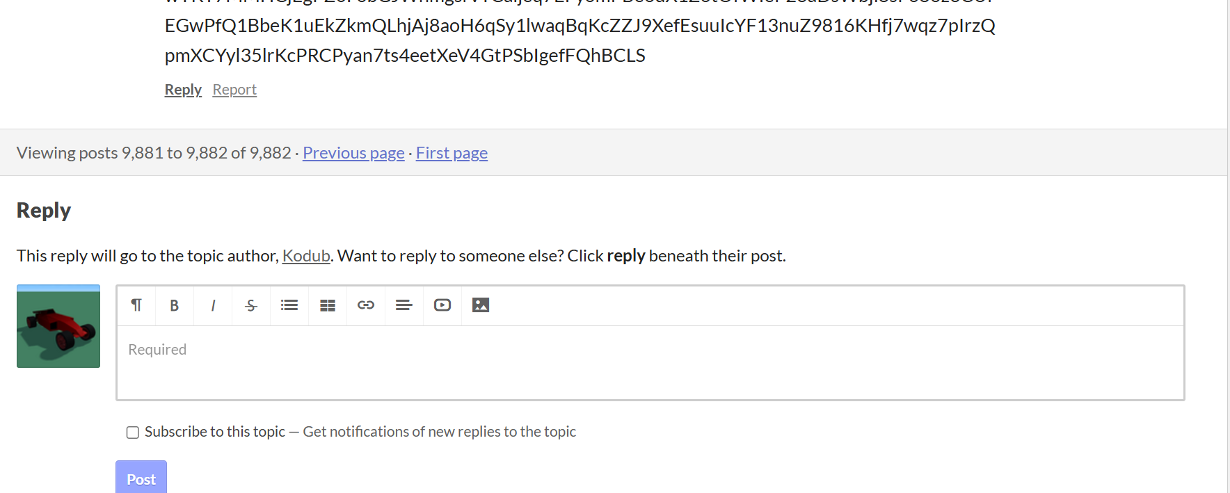 Viewing post in