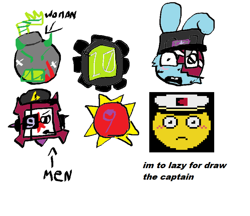 some one remerber when i make 2 renders of ten and nine like roblox gears? now i draw the two idiots + the captain (his name is captain tripmine/subspace) hehe i draw ts on paint and maybe lazy english [im spanish so i can do some errors when i write srry]