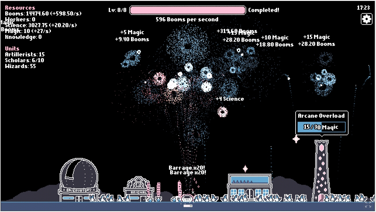 I'm thinking of adding ways to upgrade buildings which would unlock new functionalities. My idea was to make each Arcane Overload generate new currency, Orbs, which could be used to other stuff but changing units into new ones is a cool idea - I'll think about it. :)