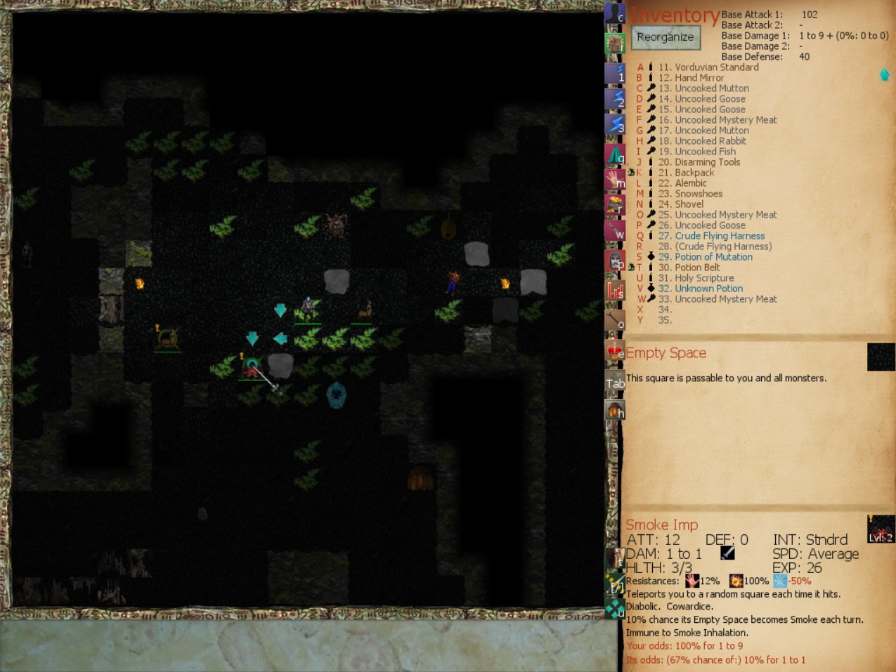 Also, there is a bug where a Smoke Imp, who's supposed to create smoke every turn, will create Foliage instead: