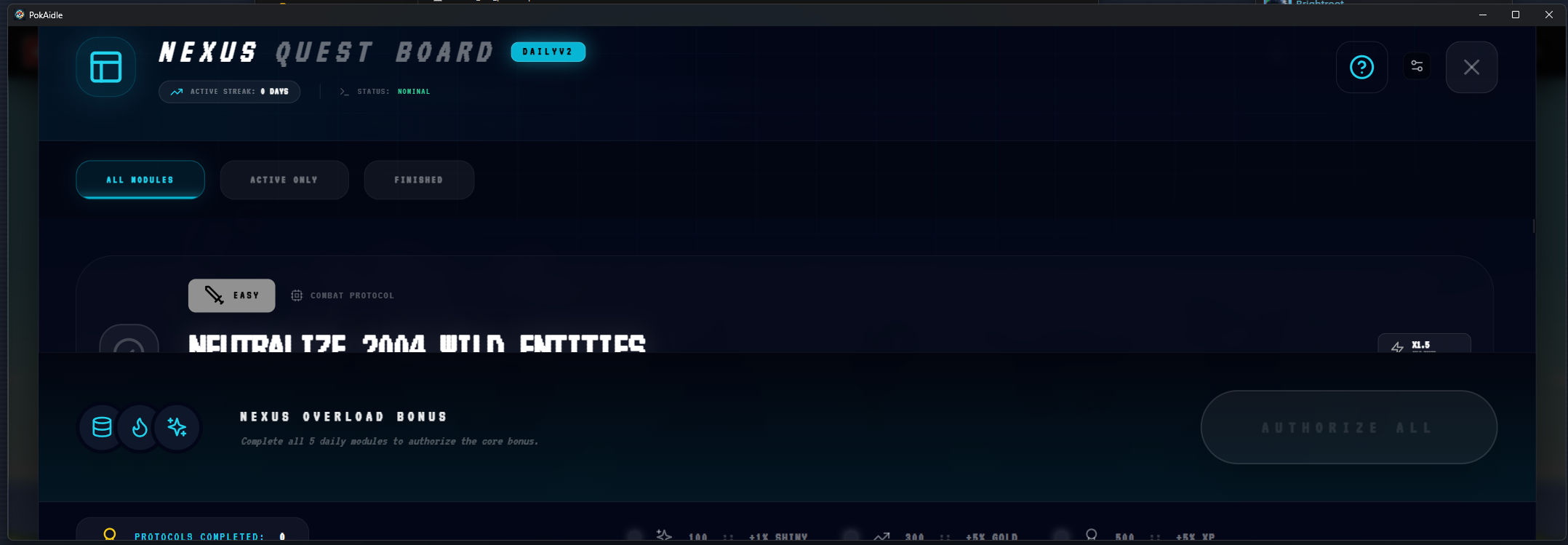 Also, the Nexus Quest Board menu's X/Back button is always positioned off the edge of my screen until I shrink the size of the window (smaller vertically or wider horizontally) in the standalone desktop app.
