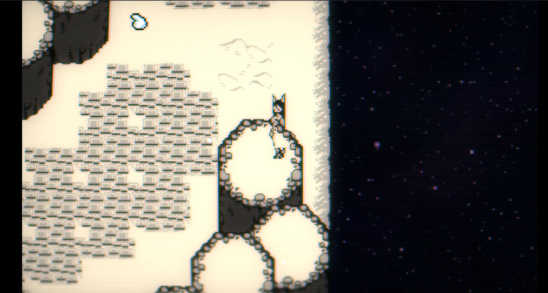 The environment is monochrome, which I think works very well for the 'disconnected' feeling I get. This place feels like a wasteland, and the only thing keeping you moving forwards is your goal. Whether it destroys or vindicates you is yet to be seen. It almost makes me sad thinking about it. Very well done!