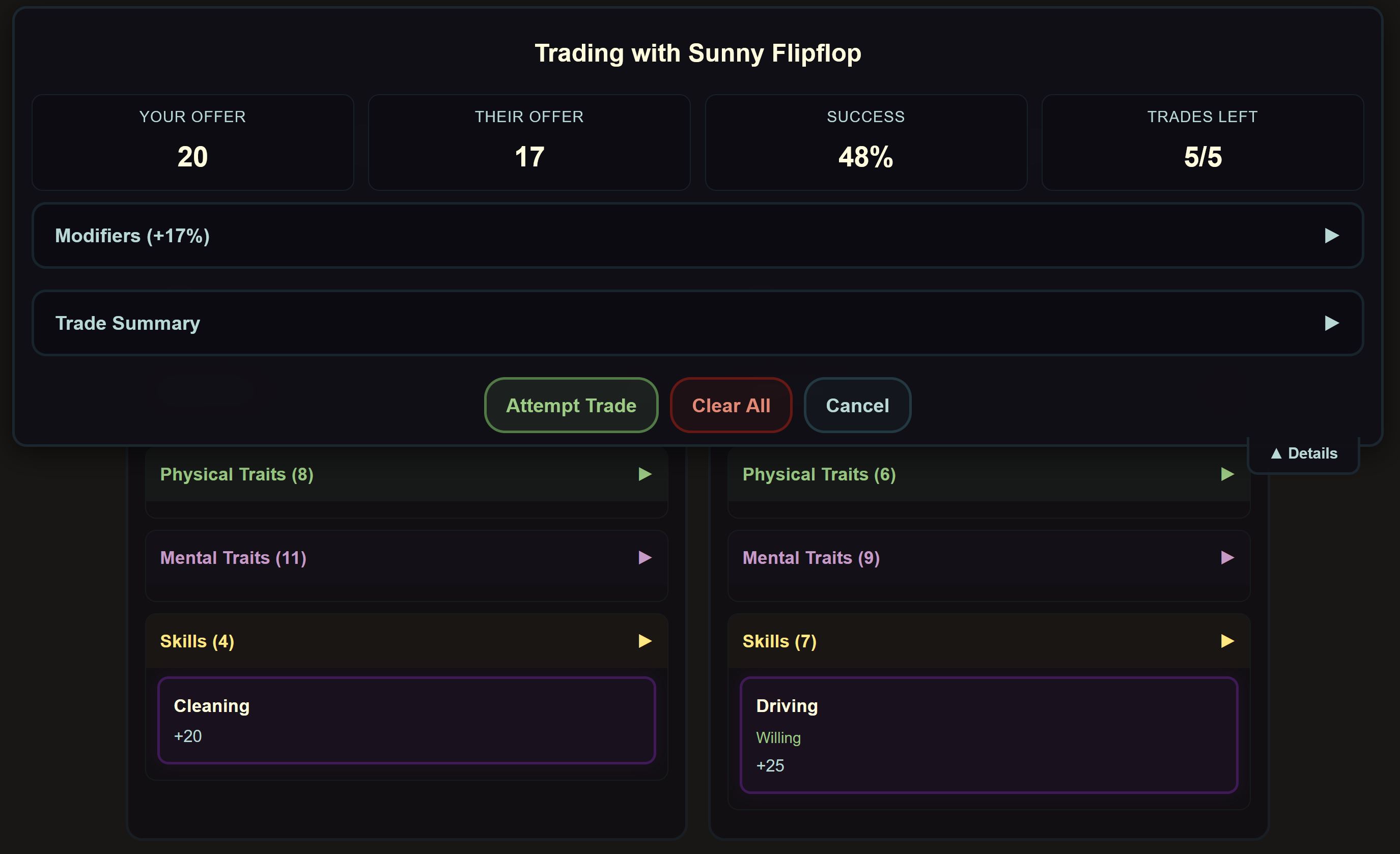 I'm getting a bug where the 'Attempt Trade' button lights up, I click it, and nothing happens.