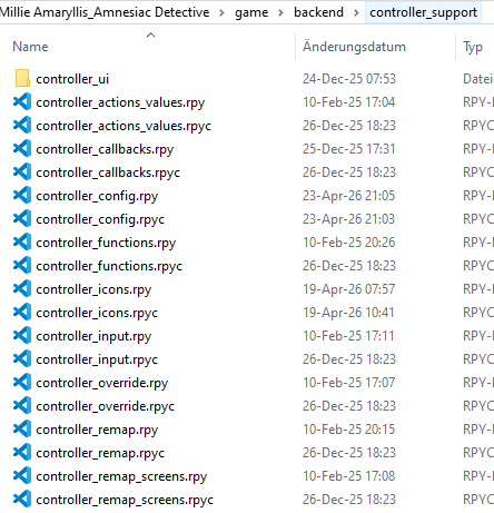 Have you updated ICON_FOLDER = "backend/controller_support/controller_ui/" at the top of controller_config.rpy to point to where you have the controller icons? It looks like you've put the files into your own subfolder, so you'll need to update the path where it can find the icons as well.