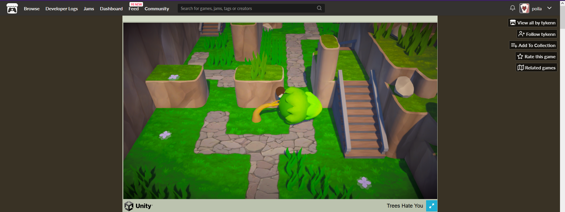 I managed to get to the part where a middle tree would block all 3 paths, but in my first time playthrough, due to some input lag and Unity engine web quirks, I instead got stuck instead of being pushed off, causing to necessitate the use of the Tree button in the Pause menu to force-kill my player and restart that section.