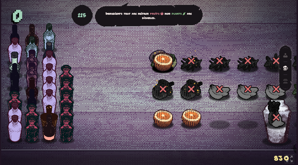 Two Kiwis with Echo, one without, 15 bottles including the one that grants +3 ingredients, and four Pineapples.