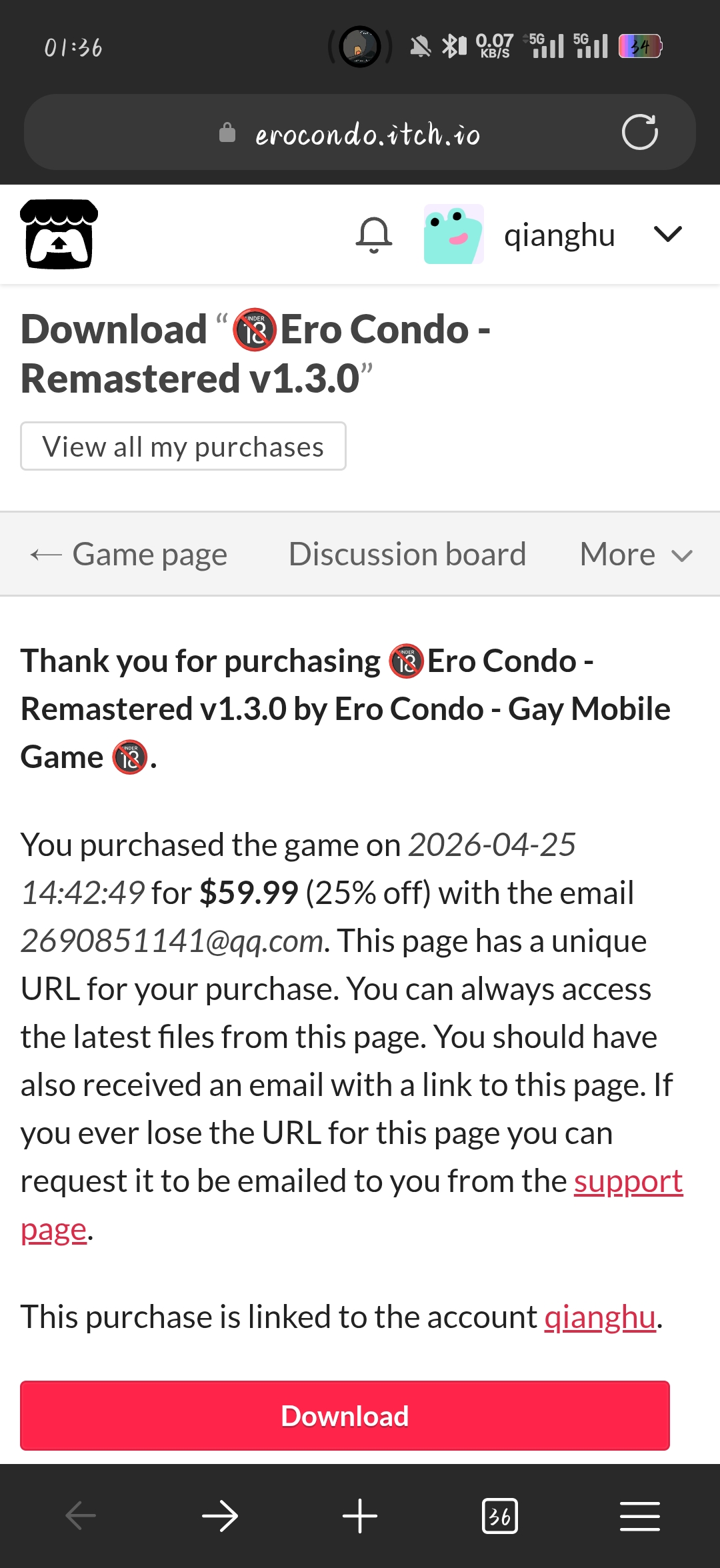 I have successfully claimed and permanently linked my own Itch account, and my orders and download permissions are fully functional now.