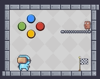 I think some sections that require to fast fall or crouch would have been nice since it seemed like the down button wasn't used at all? Also once I realized the player could press buttons too I was able to "cheese" past a few of the levels haha. I think one small improvement for red-green color blindness and even for those who aren't would be to add labels on the buttons that are arrows pointing in the direction they correspond to.