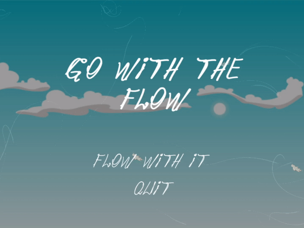 I thought this was cool, though it did jump a bit back and forth between relaxing and "Oh crap, I'm gonna hit this thing" or miss a flower. The text was a little hard to read, especially when the sentences got longer. White text on light blue background with white wispy wind can be hard to catch.