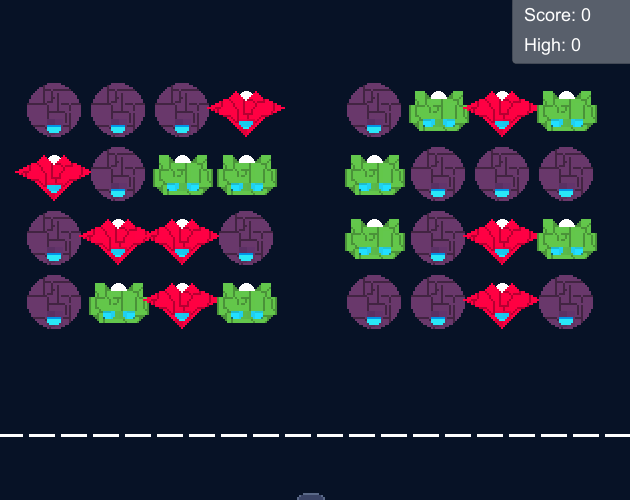 It would be nice if enemies with no neighbours would fall off so the line would be cleared rather than matching a full row.