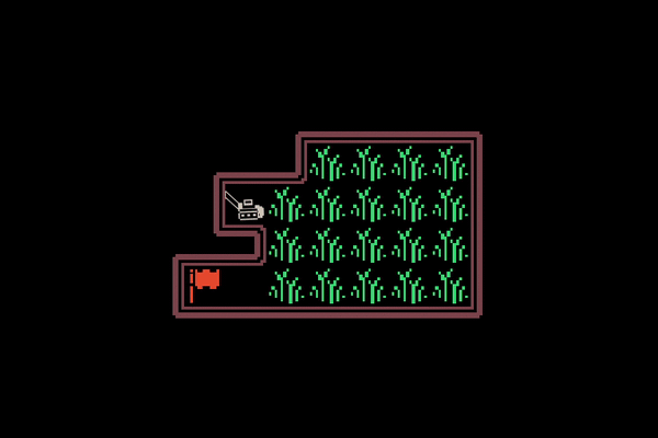 This was a neat puzzle game, I thought it was really innovative. The grass coming up and grabbing the mower is a nice looking effect, and I thought the levels were done well. The double grass was a nice twist and was introduced at a good time. As I was playing I was thinking of other tiles that could be fun - maybe a rock that acts as a boundary but on the inside of the grass that you have to navigate around. Or maybe a flower patch that you can't mow down. Or hills that you can go down but not up.