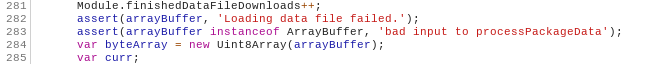 Moving on, I looked at the other three links in the JS console errors:In order, from top to bottom, the links sent me to these spots in (I'm assuming) the game code: