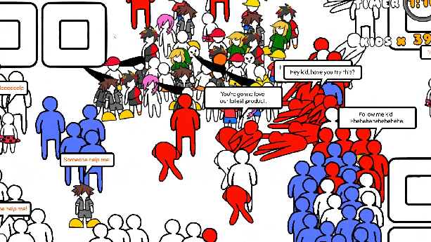 - A perfect game jam game! Really fun simple concept! Immediately understandable and easy to pick up and play. Great execution and very fun, novel visuals too! The game was surprisingly polished as well! The attack animations were really well done. It's clear whoever animated them has animated for games before. They had a satisfying weight to them. They came out fast too. Many of the games being produced in our game jam make the rookie mistake of having attacks come out too slow, often because of long anticipation animations, but not yours! The combat is fast and satisfying. You really feel like you're pushing through the crowds too! And it's funny rescuing kids and having them follow you in a big swarm. Fantastic game! Oh yeah the music ands sound FX were good too! And I loved how the kids were themed after famous video game and manga characters haha. Really fun game! Please keep making games together, you are a good team!