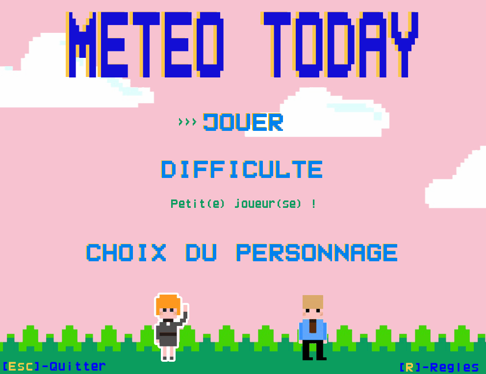 -> Par contre, juste un petit bémol, plus tu augmentes la difficulté, moins on peut aller à l'autre bout de l'écran chercher le nuage ou le soleil, donc je pense que tu devrais aussi augmenter la vitesse de déplacement du personnage en même temps que celle des objets météo qui tombent ;).