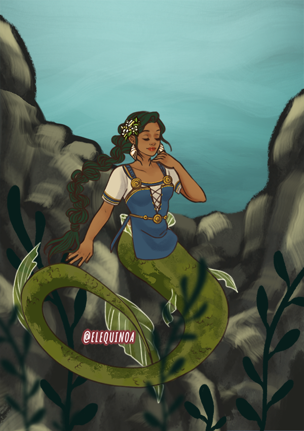 🐠Nessie is behind some rocks on the beach people watching hoping no one will notice the strange woman with leg scales~