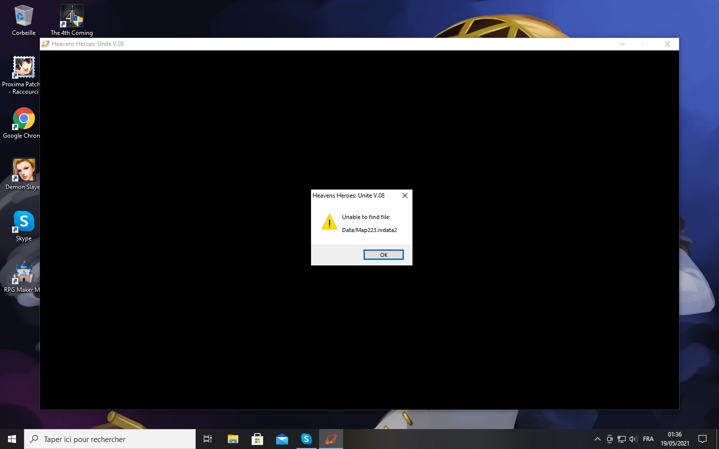 your hard work is worth i think :) , i got this error message before going to see naigo to talk about the ship(not went to chop wood yet) i had went to "home" on the world map upper part ,i had a short scene with a girl called may and then this, maybe i wasnt suppose to go back home yet?