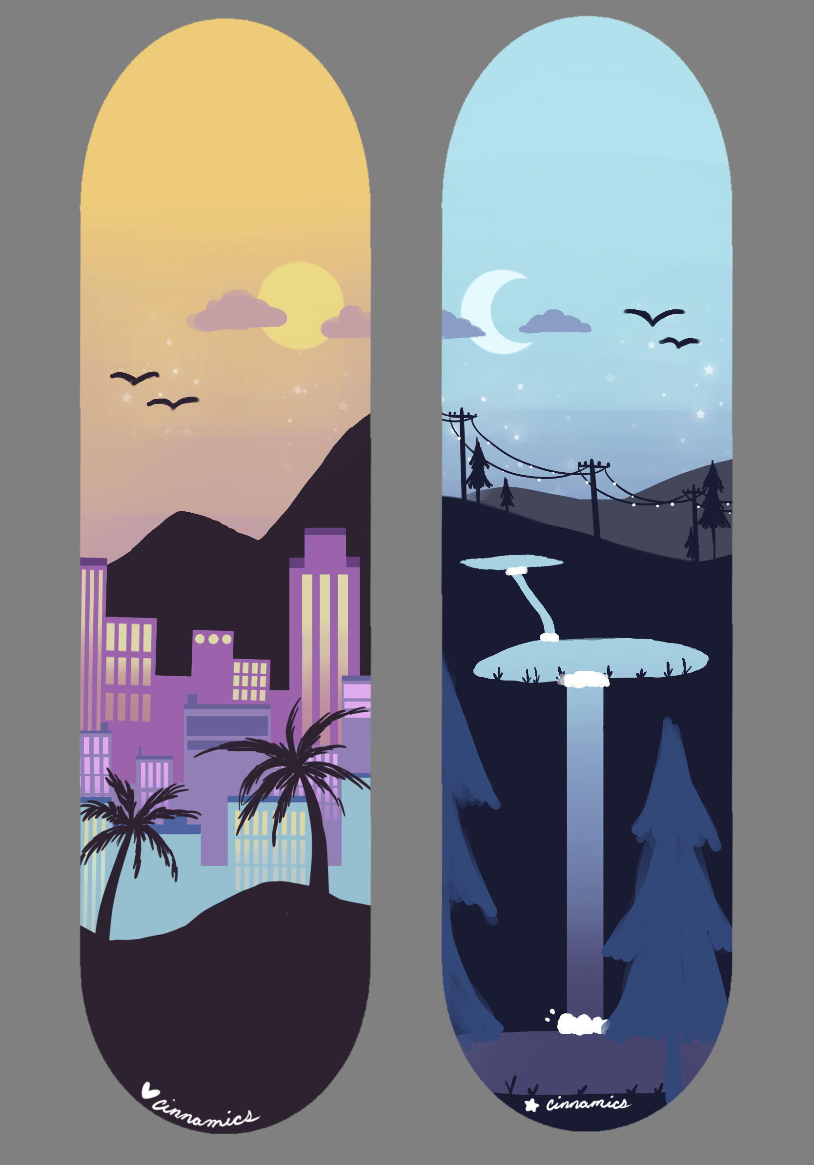 (yessss. Also I never mentioned anything about the look of Ariel's skateboard. The darker side is the top of the board)