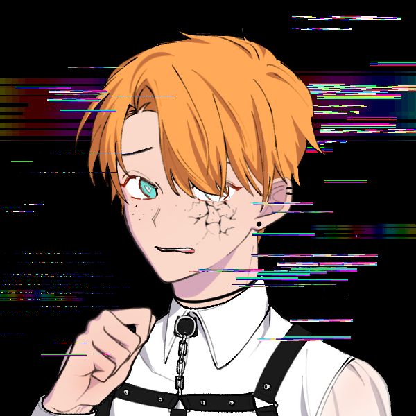 His right eye is damaged, and it's not lit up-he can't see out of that. The skin grafting around it is cracked and damaged. He looks like he got beaten up. He stands there looking up at Ried with wide, scared eyes, crying.